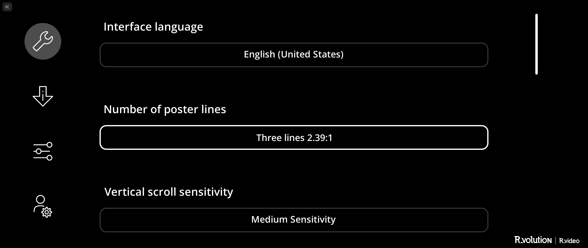 Since December 2025, the R_video interface has been compatible with Widescreen aspect ratio screens (2.35:1 / 2.39:1 / 2.40:1). R_video offers 2-line and 3-line modes adapted for widescreen displays.