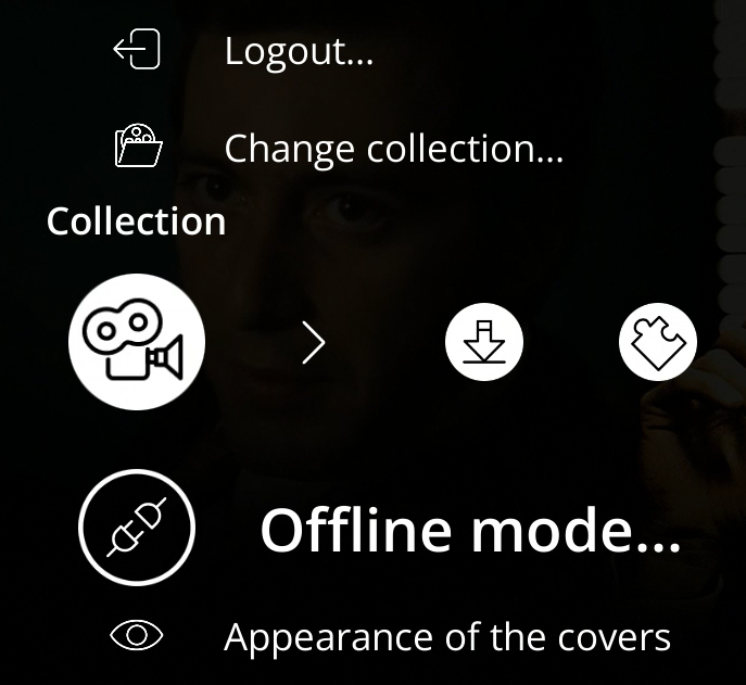 Pour accéder manuellement à une collection précédemment exportée en mode hors‑ligne, allez dans MENU > Déconnexion. Un bouton dédié au mode hors‑ligne sera alors affiché. S’il n’apparaît pas, cela signifie qu’aucune collection n’a encore été exportée en mode hors‑ligne.