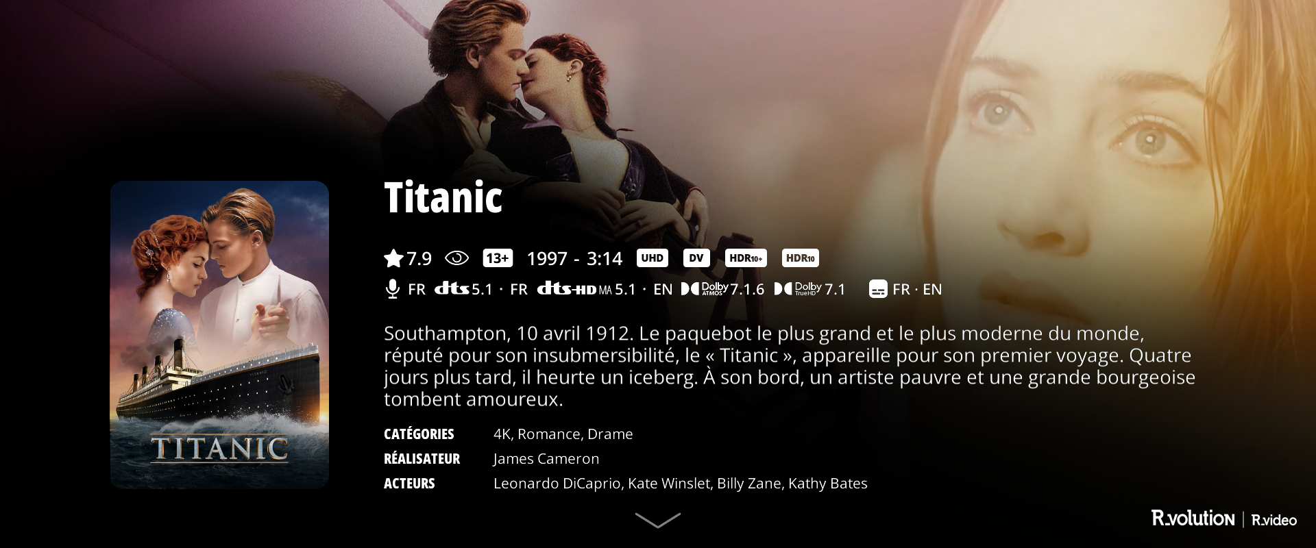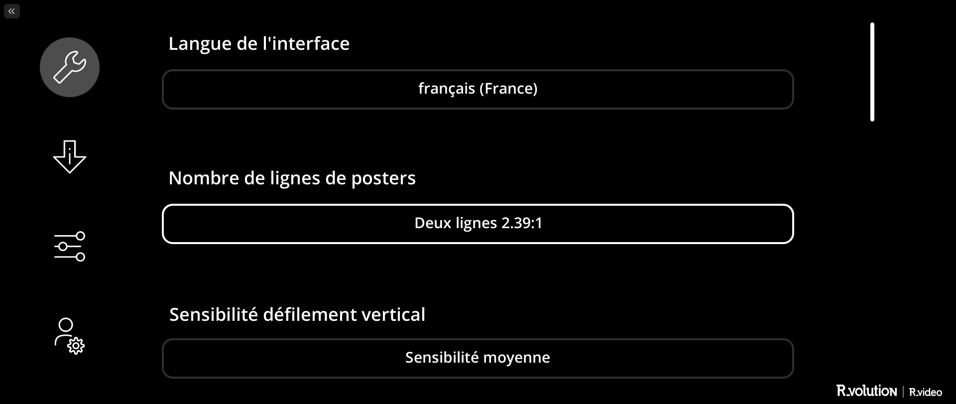 Depuis décembre 2025, l'interface R_video est compatible avec les écrans au ratio Cinemascope (2.35:1 / 2.39:1 / 2.40:1). R_video propose des modes 2 lignes et 3 lignes adaptés aux écrans larges.