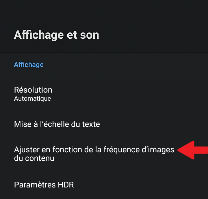 Pour configurer la partie Android TV en autoframerate, procédez comme suit :