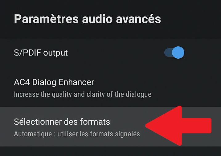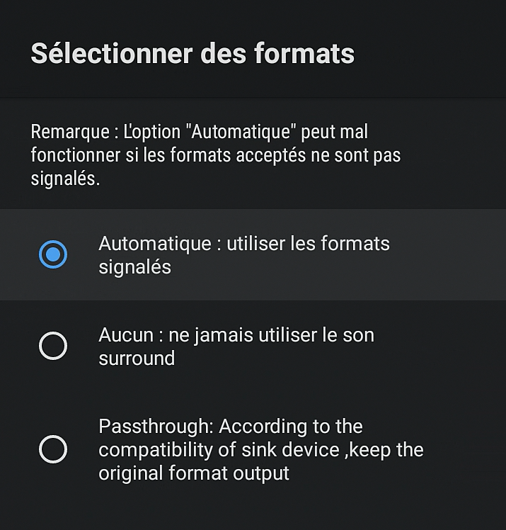 - La première option permet de choisir automatiquement le bon format en fonction de votre TV ou ampli.