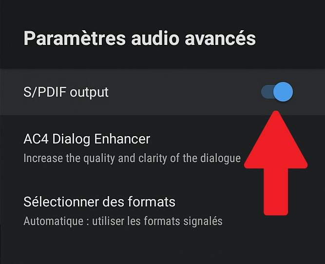 - La troisième option permet de forcer la sortie audio numérique en bitstream.